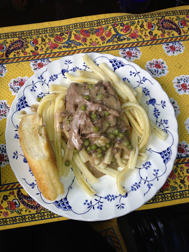 In a large skillet or Dutch oven, heat the olive oil and add as many meat cubes as you can without crowding (if the skillet is too crowded, the meat won't brown properly.) Brown the meat well on all sides, remove each batch as it browns and set them aside. It may be necessary to add a little more olive oil.