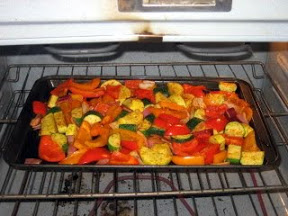 3. Bake 15 minutes, stir and turn vegetables, then bake 15 minutes, or until tender and very lightly browned. Return to bowl; add salsa and toss gently to coat. Cover to keep warm.