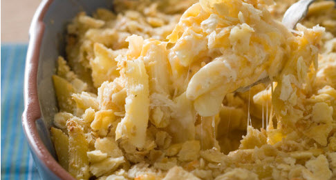 •Combine egg, garlic and milk and mix well. Place pasta in a large casserole dish. Add milk mixture and remaining ingredients, except butter and crackers. Mix well with a spoon. Combine butter and crackers. Sprinkle over pasta. Bake 30 minutes or until browned and bubbly.