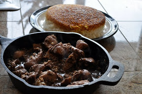 When ready to serve, place the chicken on a dish, pour the sauce over, and serve with a chelou or plain rice.