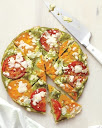 Preheat oven to 425 degrees. In a large bowl, lightly beat eggs. Stir in pesto, 3/4 teaspoon salt, 1/4 teaspoon pepper, and 3/4 cup mozzarella. In a 10-inch nonstick skillet, heat oil over medium-high. Add egg mixture and cook, stirring occasionally, 1 to 2 minutes. Arrange tomatoes in a single layer on top and sprinkle with remaining mozzarella.