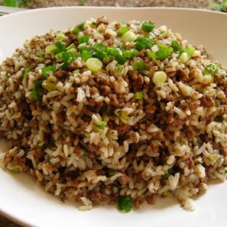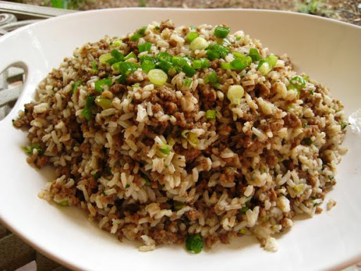 Toss the cooked rice and the contents of the skillet together in a large preheated bowl. Serve hot.