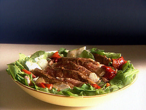 - Read more at: http://www.foodnetwork.com/recipes/giada-de-laurentiis/seared-rib-eye-steak-with-arugula-and-roasted-pepper-salad-recipe3/index.html?oc=linkback