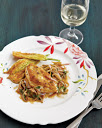 Pour the anchovy-basil pan sauce over the roasted chicken breasts, spooning the shallots all around, and serve right away.