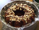 Once cake is completely cool. Move to serving plate. Using meat fork, poke holes all over cake. In a small sauce pan, melt butter with remaining water and sugar. Bring to a boil and boil for 5 minutes. Remove from heat and stir in remaining limoncello. Carefully pour glaze over cake. If necessary, use a pastry brush to brush on any overflow of glaze. Immediately sprinkle almonds in top of cake. Store in an airtight container.