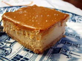 Cut cheesecake lengthwise into 4 strips, then crosswise into 6 strips, forming 24 bars. Sprinkle bars with fleur de sel.