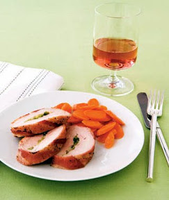 1. Heat oven to 425ºF. Make a long slit lengthwise down center of pork, being careful not to cut all the way through. Open like a book. Place scallions on one cut side of pork; fold pork back over to close.