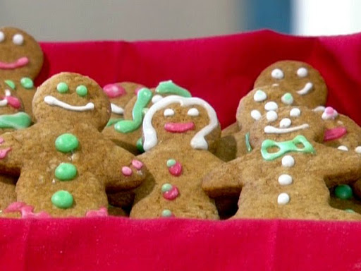 Line cookie sheets with parchment paper. Allow the dough to sit at room temperature for about 15 minutes, until pliable. Take about 1/2 cup of dough at a time and roll onto a floured board until about 1/8-inch thick. Cut out with gingerbread boy and girl cookie cutters. You can re-roll the scraps. Using a spatula, transfer the cookies from the board to the prepared cookie sheets.