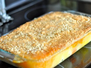 Preheat oven to 350 degrees. Dump both of the fruits & their juices into a 9 x 12 Pyrex baking dish. Pour the dry cake mix on top of the fruit & spread out evenly. Mix oatmeal & coconut & sprinkle over cake mixture with fingers. Melt butter & pour on top evenly. It should cover the entire cake mix. Bake for one hour & serve with ice cream.