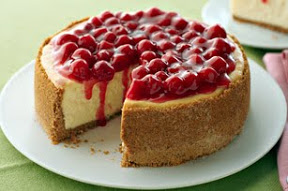 BAKE 1 hour to 1 hour 10 min. or until center is almost set. Turn oven off. Open oven door slightly. Let cheesecake set in oven 1 hour. Remove cheesecake from oven; cool completely. Refrigerate at least 4 hours or overnight. Loosen cheesecake from rim of pan; remove rim. Top cheesecake with pie filling just before serving. Store leftover cheesecake in refrigerator.