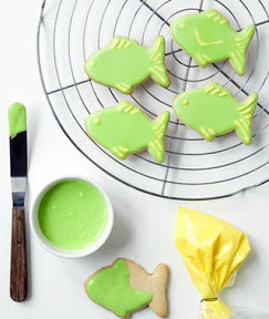 3. Heat oven to 350°F. Roll out 1 disk between 2 sheets of wax paper to 1⁄4 in. thick. Remove top layer of wax paper and cut out shapes using cookie cutters. Transfer to a baking sheet and bake for 12 minutes or until cookies are golden. Transfer cookies to wire rack and cool completely.