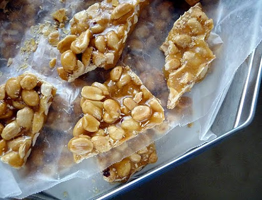 3. Transfer to the prepared baking sheet and spread with a lightly greased spatula. Let cool until firm, 15 minutes. Break into pieces. The brittle can be stored in an airtight container at room temperature for up to 3 weeks.