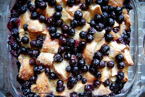 Evenly pour bagel mixture into prepared dish, and top with blueberries; sprinkle top with additional 1 1/2 tablespoons sugar. Bake 40-45 minutes or until golden brown, bubbly, and set. Cool on a wire rack until ready to serve.