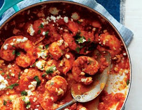 Heat oven to 400 degrees. Heat olive oil and add garlic and red pepper flakes. Stir 30 seconds and add white wine until almost evaporated. Add marinara sauce and oregano. Simmer 5 minutes and stir in shimp. Crumble feta cheese over top and bake in oven about 8 minutes. Sprinkle with parsley