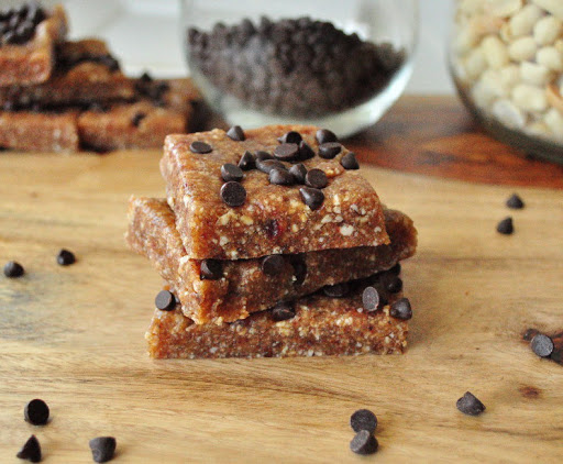 In the food processor, blend the peanuts and salt into a powder. Pit the dates and add them in as well. If needed, slowly add a bit of water to help the mixture come together. Once the dough is formed, line and 8X8 pan with parchment paper leaving enough room for some paper to stick out the sides. Carefully, spoon the dough into the pan evenly. The dough will be very sticky and you may need to wet the spatula a bit. Using the extra paper, pack the dough down until it is flat and even. Place in the fridge to firm up. I store them in the fridge. They should keep at least a week if you can get them to last that long!