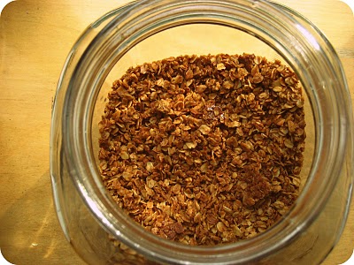 Combine all dry ingredients in one bowl. Combine wet into another. Whisk the wet into a dressing and then pour over the dry. Once mixed well, pop in the oven at 330 for 20 min. Pull it out and move the granola around on the tray and put back for another 12-15 minutes or until granola becomes crispy.