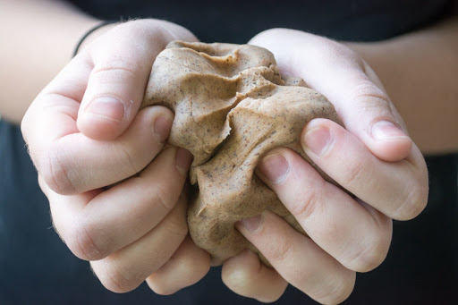 Turn the warm dough out onto a lightly floured surface and gently knead it a few times until it is smooth and not sticky. Lightly flour your hands if necessary.