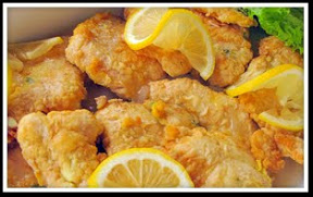 1. In a shallow dish or bowl, mix together the egg and juice of 1/2 lemon. In another shallow dish or bowl mix together the flour, garlic powder and paprika. Dip chicken breasts in egg mixture, then flour mixture.