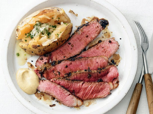 Herb-and-Mustard Sirloin With Baked Potatoes