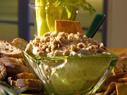 Place olives in food processor and grate in garlic, add cream cheese and ricotta cheese. Pulse the cheese and olives into a fairly smooth spread. Transfer to a serving bowl and top with hazelnuts. Toast the bread on a baking sheet 5 to 10 minutes to lightly crisp. Surround the spread with bread, pita crisps and celery.