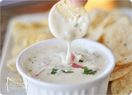 Heat the oil in a medium saucepan over medium-high heat. Add the onion and jalapeño to the pan and cook, stirring occasionally, until tender, about 5 minutes. Reduce the heat to medium-low. Add both of the shredded cheeses and 1/4 cup of the milk. Whisk or stir until completely melted. Mix in the tomato and cilantro, and add additional milk gradually as necessary to achieve desired consistency (I added about 1/2 cup total). Transfer to a warmed serving bowl and serve immediately.