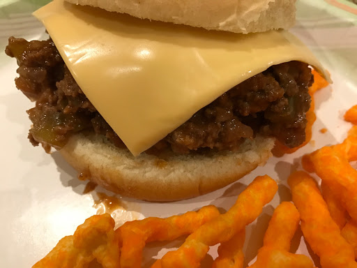 Cook and stir meat and onion in large skillet until meat is brown. Drain off fat. Stir in green pepper, catsup, water and mustard; heat to boiling, stirring occasionally. Reduce heat; cover and simmer until vegetables are tender, about 25 minutes. Spoon mixture onto bottom halves of buns; top with remaining halves.