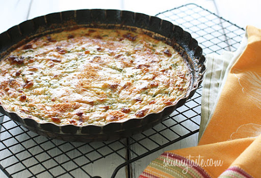 Preheat oven to 400°. Lightly spray a pie dish with cooking spray or your misto. Combine zucchini, shallots, chives, and mozzarella cheese in a bowl.