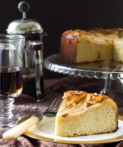 Let the cake cool in the pan for about 30 minutes then remove the sides of the pan and transfer to a serving platter (removing the parchment is optional but recommended). The cake is best served slightly warm.