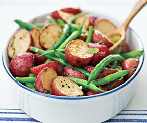 1. Bring a large pot of salted water to a boil. Add potatoes and cook until almost tender, about 15 min. Add beans and cook until just tender, about 3 min. Drain well.