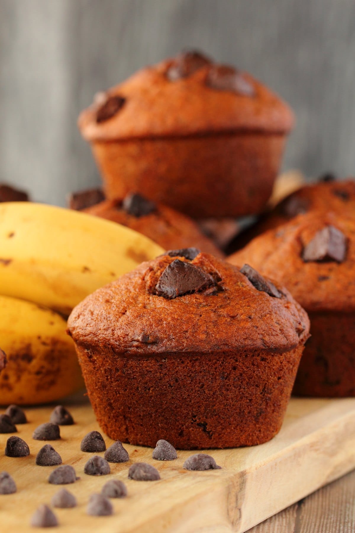 Rich and flavorful vegan banana chocolate chip muffins. These moist and delicious vegan muffins are packed with chocolate chunks and wonderfully satisfying!