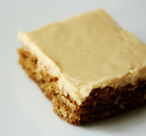 Let the bars cool and then spread the frosting over the bars in an even layer.