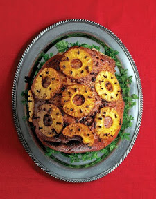 2. Heat oven to 350˚. Transfer ham to a rack in a roasting pan. Using toothpicks, secure pineapple to ham; stud with cloves. Pour 2 cups Coca-Cola over ham; pour 1 cup water into pan. Cover loosely with foil; bake for 1 hour.