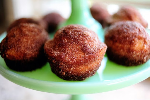 Shake muffins out while still hot. Dip muffins in butter, then into the sugar/cinnamon mix. Let cool.