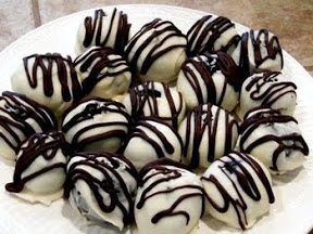 9. When Oreo balls are no longer sticky to the touch, decorate with drizzles of chocolate and white almond bark.