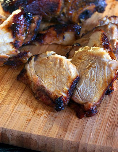 6. Transfer the pork to a cutting pork and allow it to rest for 10 minutes. Thinly slice the pork, transfer the sliced meat to a serving platter, and pour the pan juices over the meat. Serve with rice and/or cabbage.