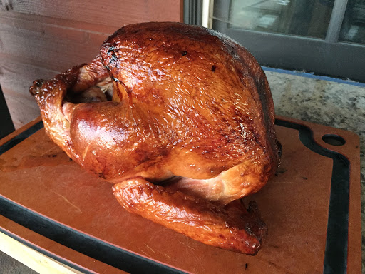 * This is an easy way to smoke a turkey. The marinade mixture is used as an injection solution and as a baste. If you bring the smoker temperature up towards the very end, you will get a nice crispy skin on your turkey. Similarly you can transfer the turkey to the oven at around 300 degrees F for about 10 minutes.