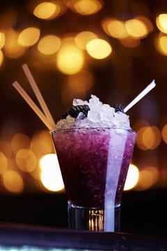 Garnish with the reserved blackberry and a straw.