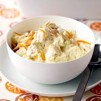3. Tear cake into bite-size pieces and place in a 13 x 9 x 2-inch baking dish. Pour orange juice–whipped cream mixture evenly over cake pieces. Cover and refrigerate overnight.