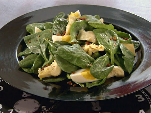 In large bowl, whisk together olive oil, vinegar, Dijon mustard, paprika, salt, pepper and sugar. Add spinach, mushrooms, bacon, onion and sunflower seeds (if desired); toss to coat. Garnish with eggs.