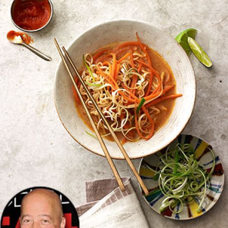 2. Return saucepan to stove-top. Bring broth to boil over medium-high heat. Reduce heat to medium and whisk in soy sauce and next 4 ingredients. Add carrots; cook 1 minute.