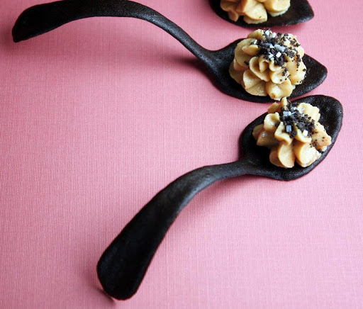 Peanut Butter Mousse in Tuile Cookie Spoons