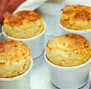 4.Spoon the soufflé mixture into the ramekins, filling them to 1/2 inch below the rim. Run your thumb inside the rim of each ramekin to help the soufflés rise evenly. Sprinkle the remaining Parmigiano-Reggiano on top and bake in the bottom third of the oven until the soufflés are puffed and golden brown, about 20 minutes. Serve immediately.
