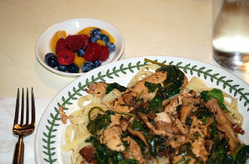 9. Serve one chicken breast and sauce over 3 oz. cooked fetticini and one cup of fruit salad.
