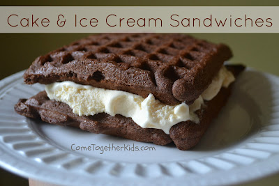 4. Put the finished waffles onto a cooling rack to cool, then enjoy. We ate a couple just plain since we didn't have any frosting on hand, and then made the rest into some yummy Cake and Ice Cream Sandwiches.