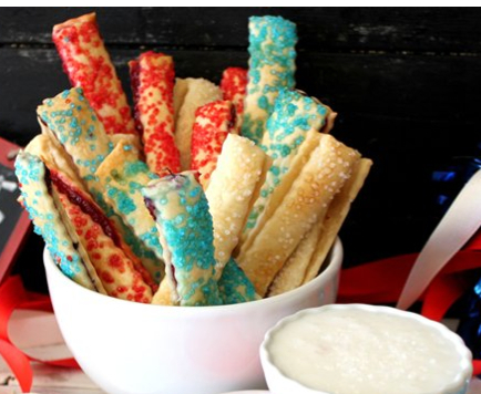 Cut each filled pie-crust stack into 1-inch-wide strips. Cut each strip once crosswise so “fries” aren’t too long. Place in single layer on cookie sheet.