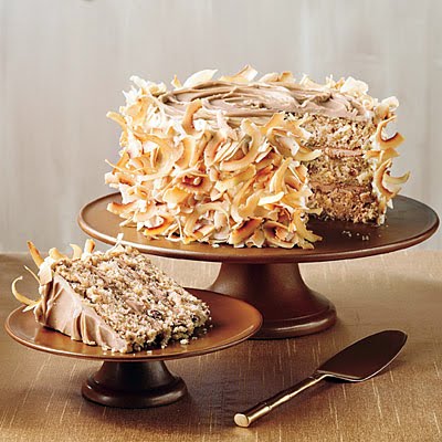 6. Prepare Quick Caramel Frosting. Immediately spread frosting between layers and on top of cake. Spread Cream Cheese Frosting over sides of cake; press 3 cups toasted shaved coconut onto sides of cake.