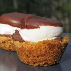 While the crust is in the oven, break two of the candy bars into rectangles. Remove pan from oven; place one rectangle into each cup.
