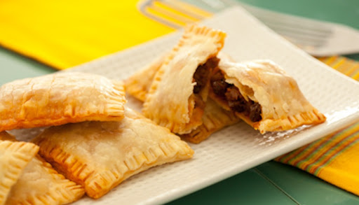 Put 2 tablespoons of filling in the center of each rectangle. Brush a little egg wash around the rim. Fold over to form a square pocket. Pinch the edges together with your fingers; then press the edge with the back of a fork to firmly seal the edges.