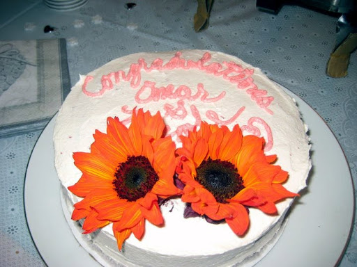 Divide cake batter evenly between prepared cake pans. Place pans in the oven spaced evenly apart. Bake for about 35 minutes, rotating 45 degrees halfway through. When the cakes pull away from the side of the pans and a toothpick inserted into the center of each comes out clean, they are ready.