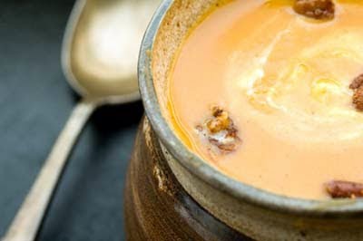 Chipotle Sweet Potato Soup with Chipotle Cinnamon Pecans